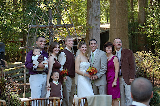 Oldest daughter with her hubby and sons, our son, baby daughter and her new hubby, me, and my love.